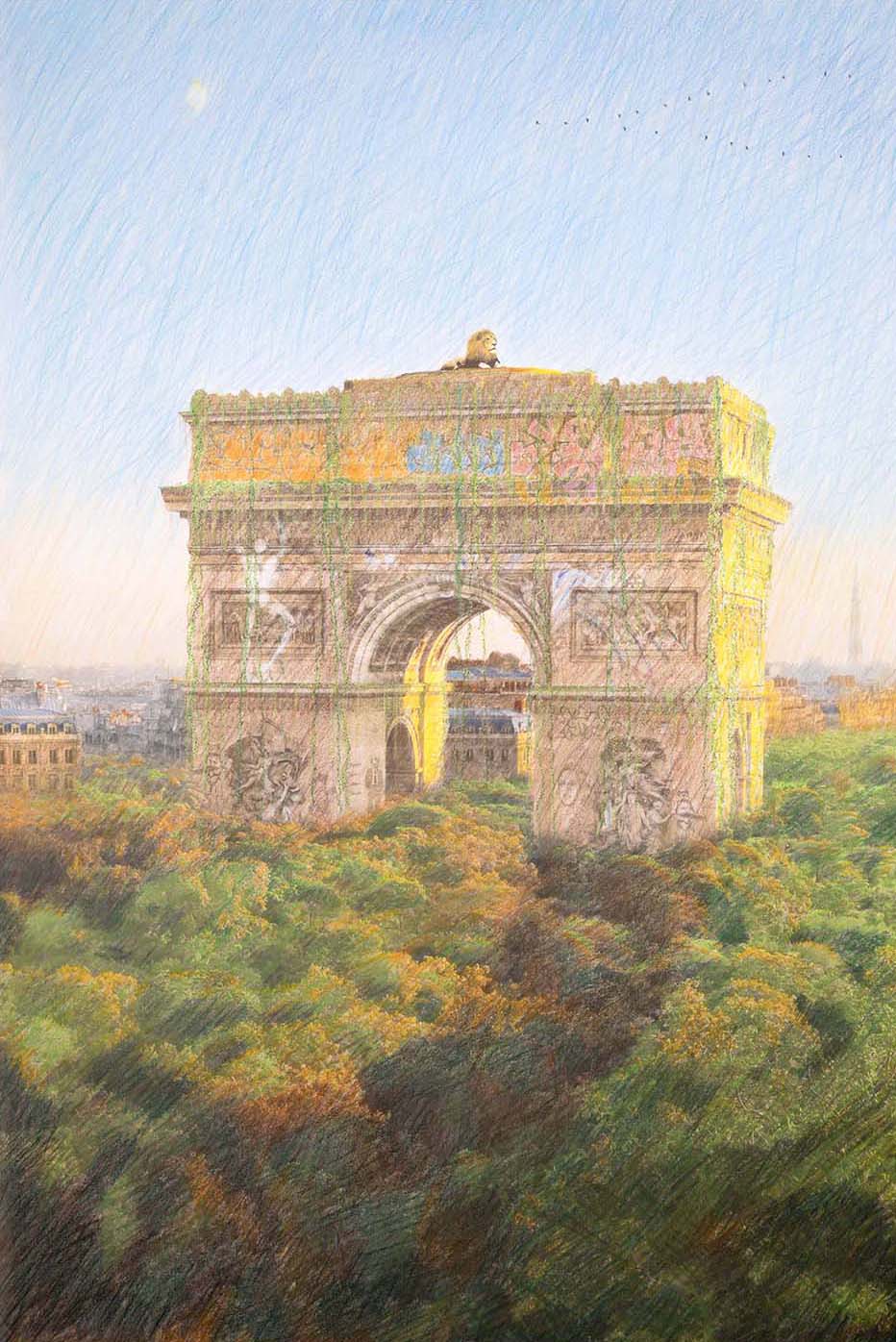 En photographiant lui-même tous les éléments qui composent ses images  (arbres, végétaux, animaux, nuages, ville, graffitis…), il compose sous forme de collage numérique la photo imaginaire des grandes métropoles : Paris, Londres, New-York, Shanghai… où la nature a repris l’espace dont elle avait été exclue et où l’Homme n’est pas si loin…