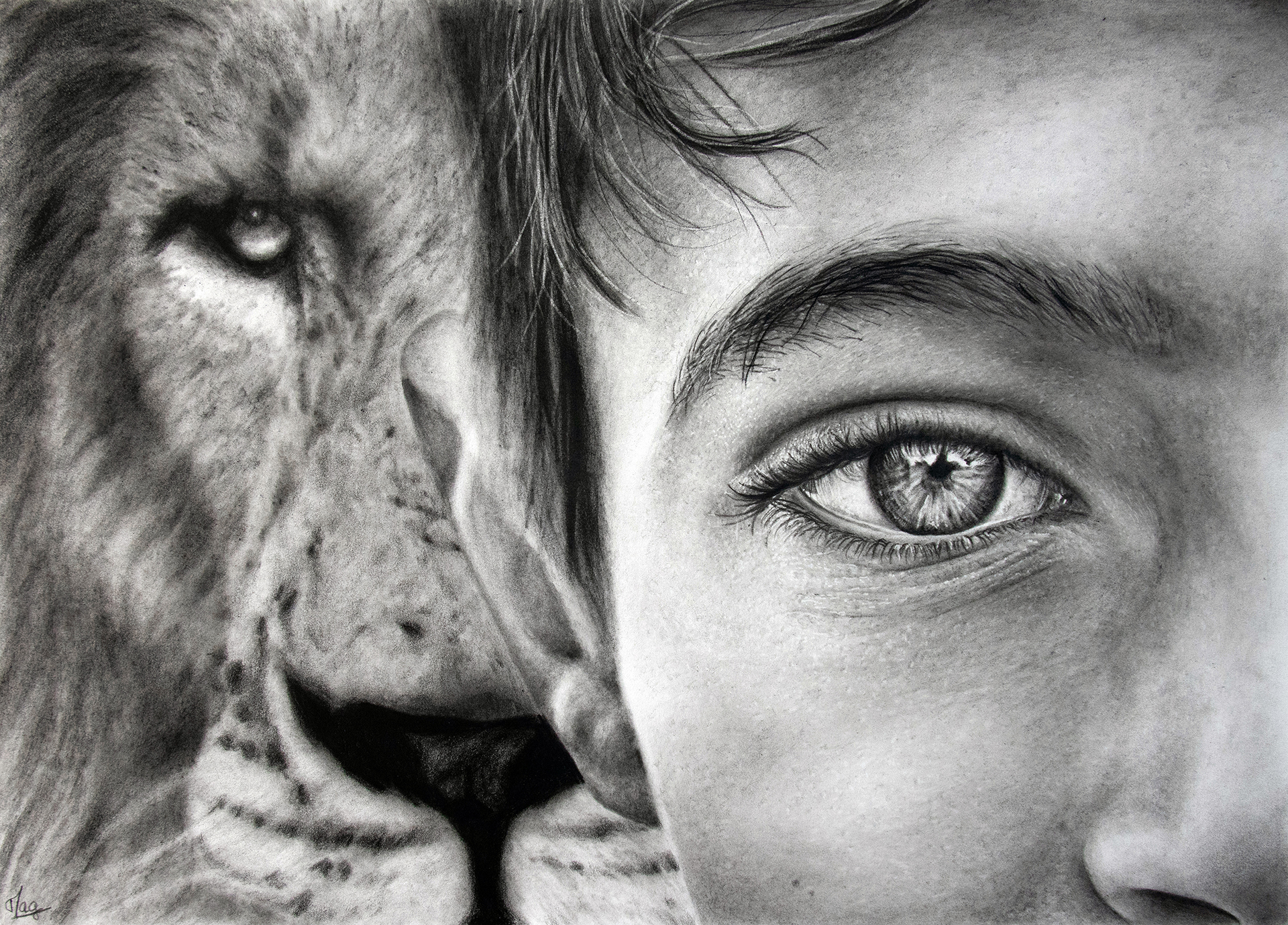 Through the series of drawings “Wild Spirits”, the artist illustrates the force of nature by exploring the deep connection between humanity and the animal world. Made with graphite and carbon pencils, these drawings depict a child as the protagonist, radiating innocence, curiosity and untamed potential, while a wild animal subtly stands in the background, symbolically representing different facets of their personality.