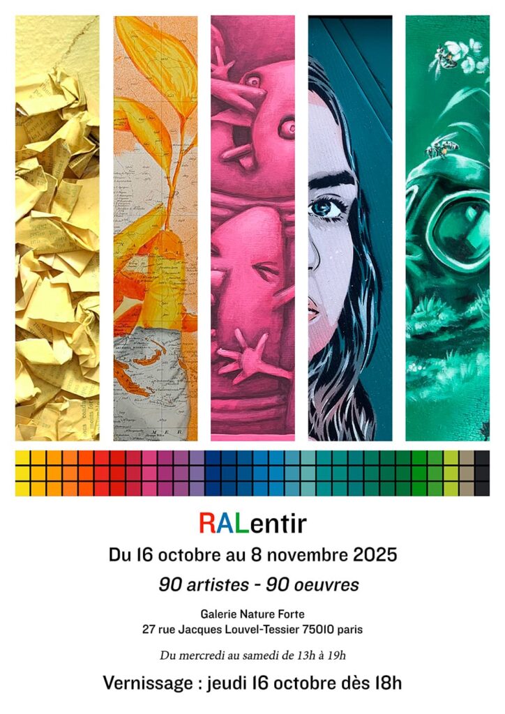 Exactement deux ans après sa grande sœur, et en collaboration avec Jibé, l’exposition RALentir se tiendra à la galerie Nature Forte du 16 octobre au 8 novembre 2025. Cette fois ce seront 90 artistes qui présenteront 90 œuvres.