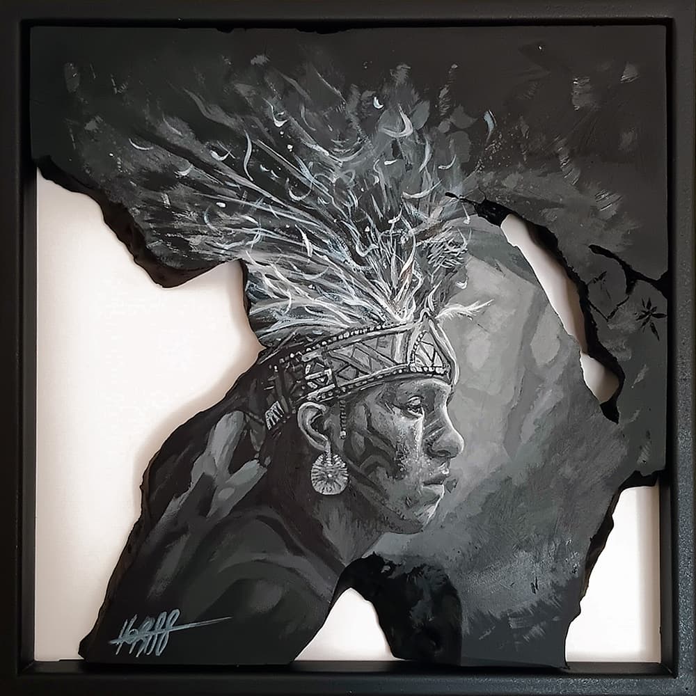 Acrylique sur bois brûlé